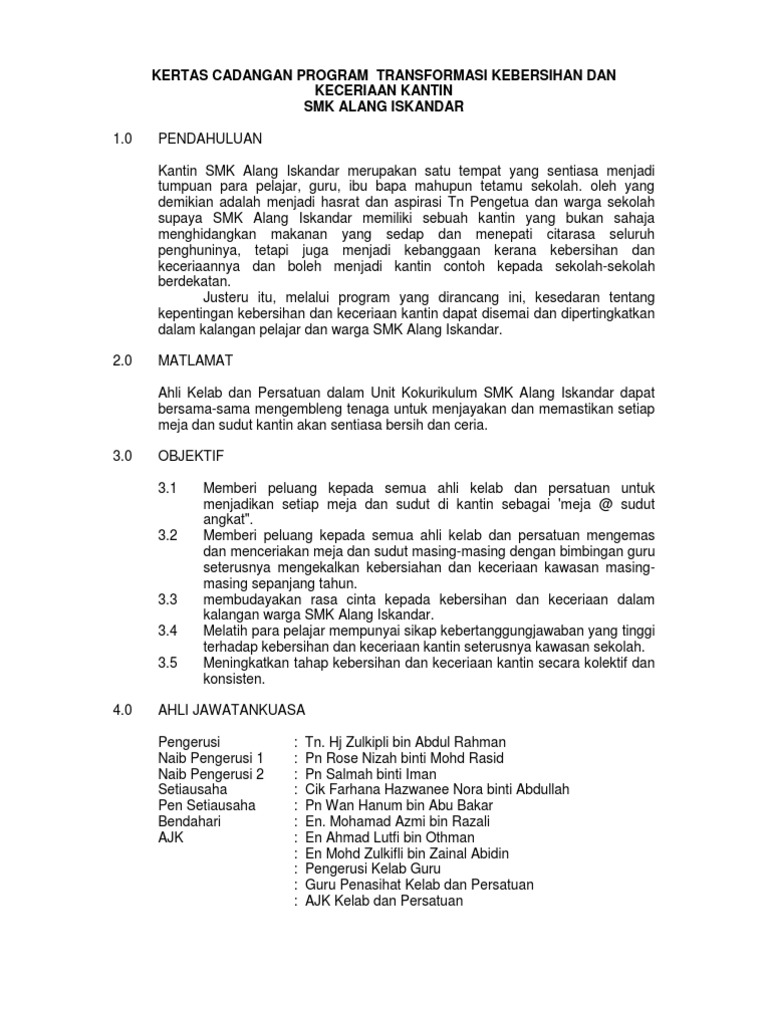 Check Pages 1-5 of kertas kerja keceriaan 2017 in the flip PDF version. Sekolah bersih Mempertingkatkan dan mempromosikan kebersihan dan keceriaan sekolah. 21070 KUALA TERENGGANU TERENGGANU DARUL IMAN No.